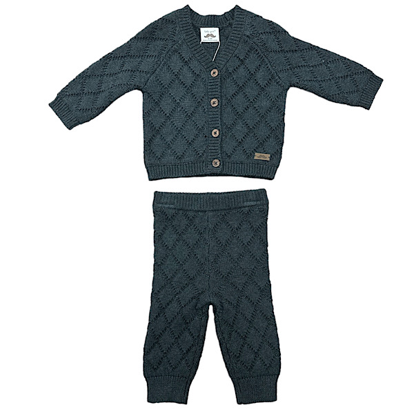 Baby Grey Cotton Cable Knit Set 0-12M