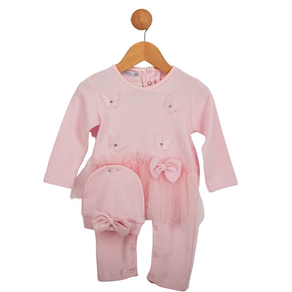 Pink Butterfly Peplum 3PC Outfit 0-9M
