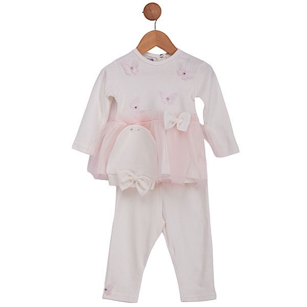 Ivory/Pink Butterfly Peplum 3PC Outfit 0-9M