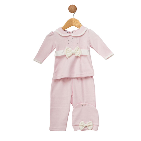 Pink 3PC Bow Outfit & Hat Set 0-9M