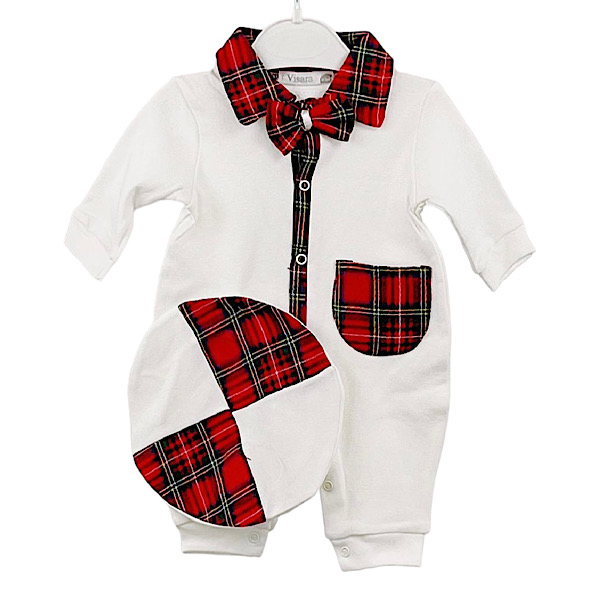 Ivory/Blue Teddy 2PC All-In-One Outfit & Hat 0-9M