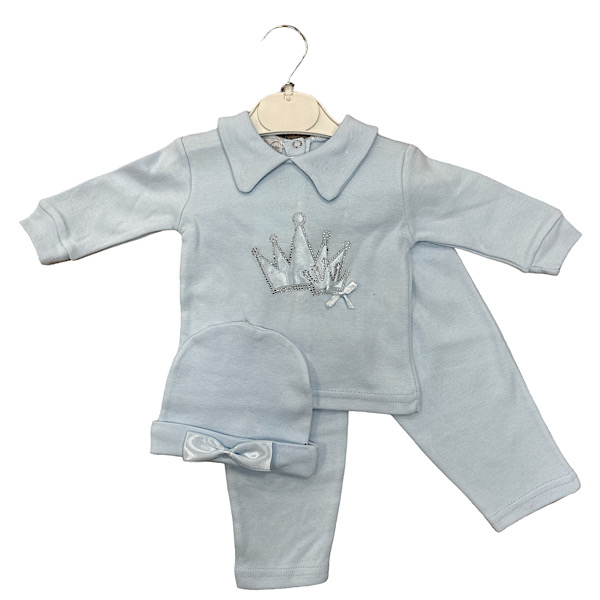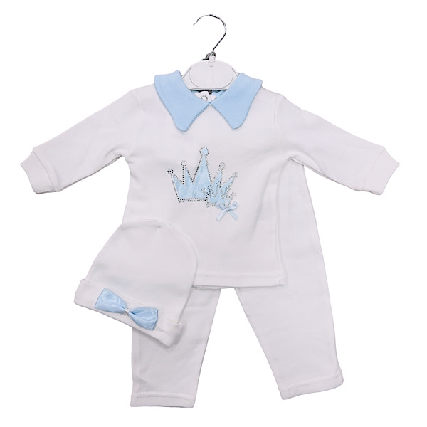 Blue/Ivory Crown Princess 3PC Layette Set 0-9M
