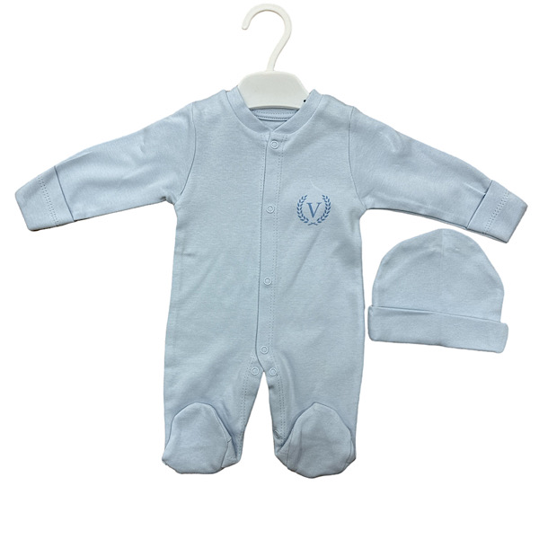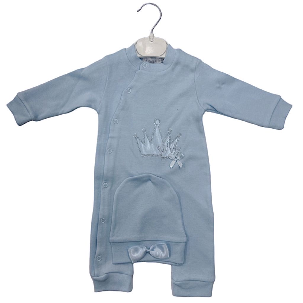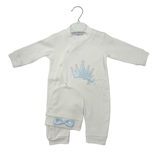 Ivory & Blue 2PC Crown Baby Grow 0-9M
