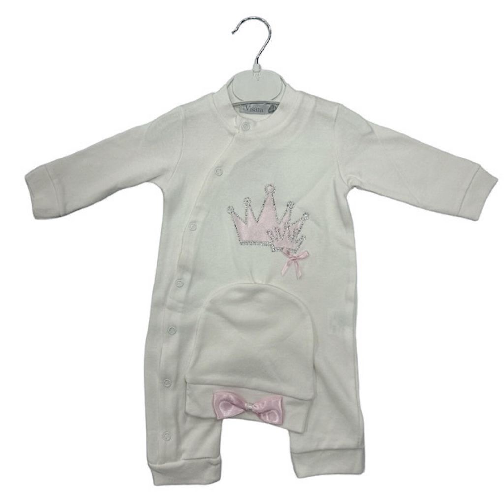 Ivory & Pink 2PC Crown Baby Grow 0-9M