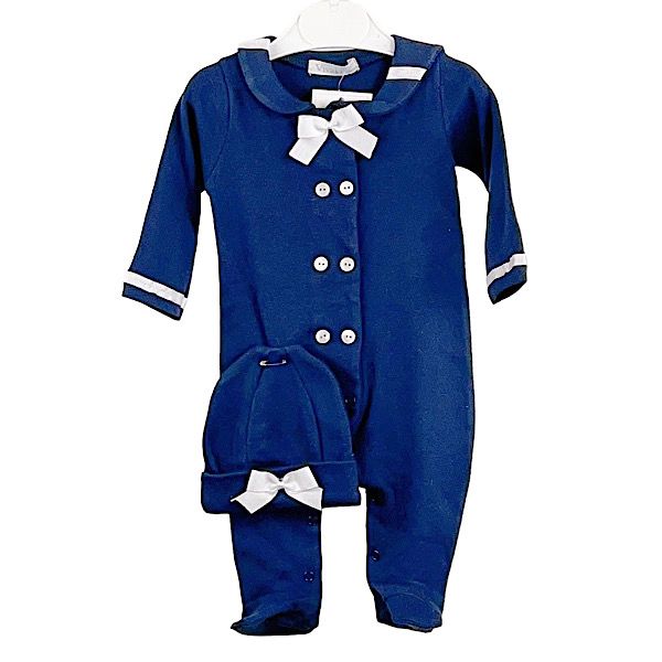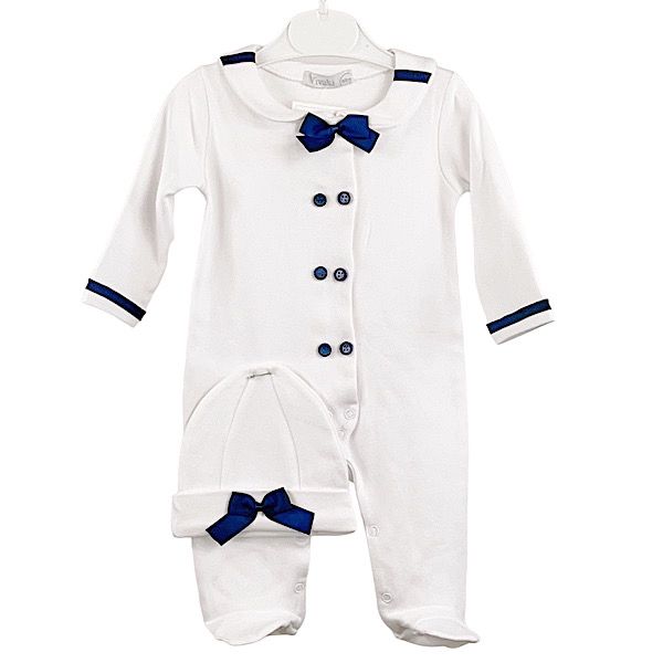 White & Navy Sailor Sleepsuit & Hat Set 0-9M