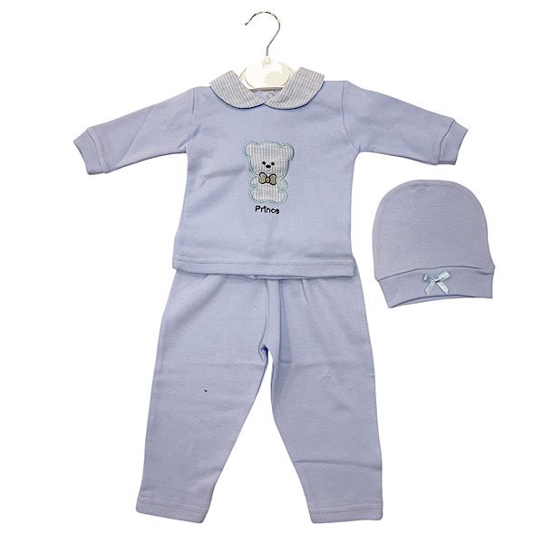 Blue Teddy 3PC Outfit & Hat Set 0-9M