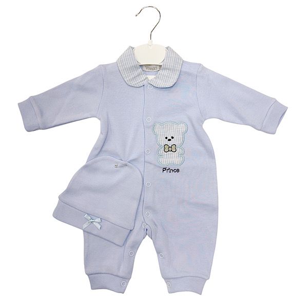 Blue Teddy 2PC All-In-One Outfit & Hat 0-9M