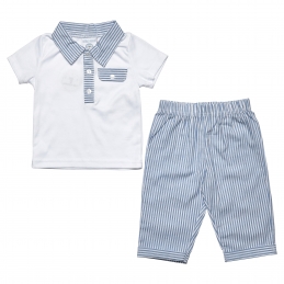 B/Blue & White Pinstripe Trousers Set 6-24M