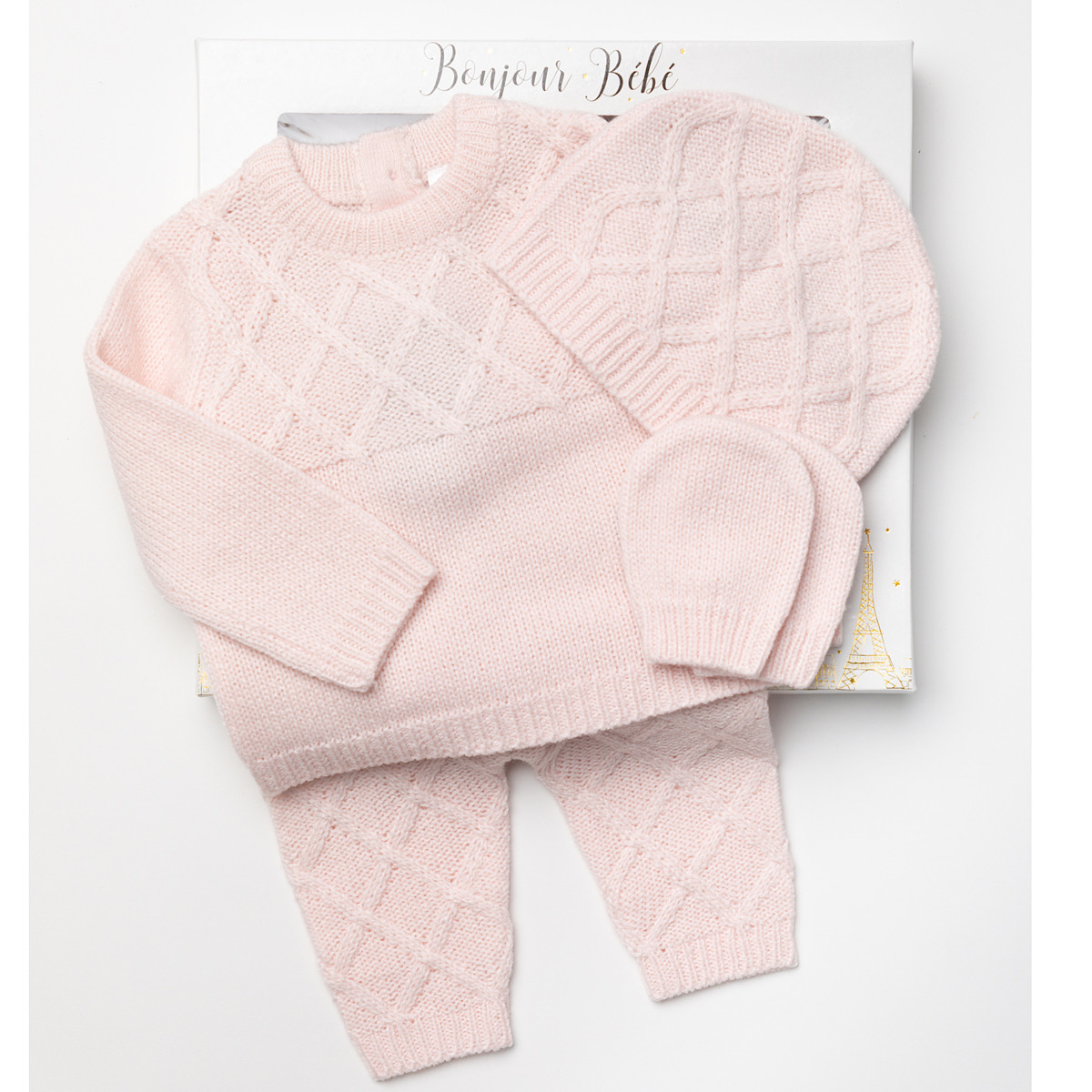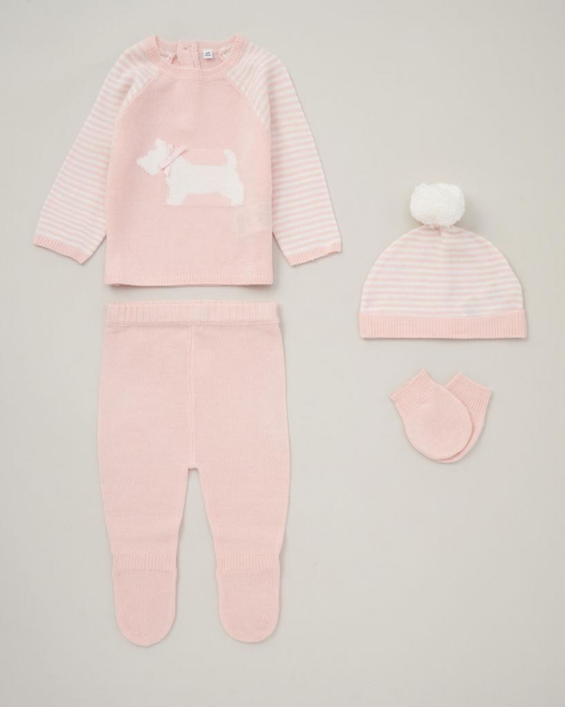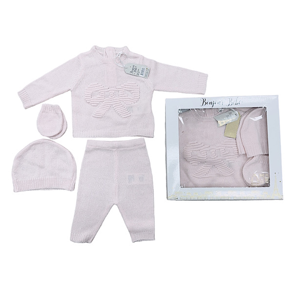 Baby Pink Knitted 4pc Layette Gift Set NB-6M