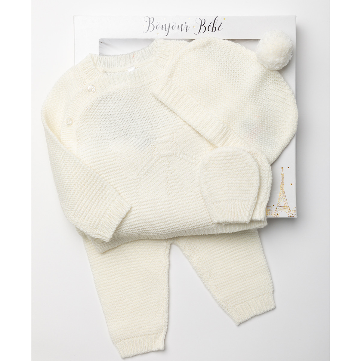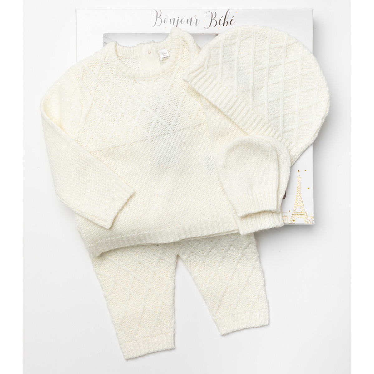 Ivory Knitted 4pc Layette Gift Set NB-6M
