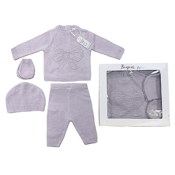LILAC Bow Knitted 4pc Layette Gift Set NB-6M