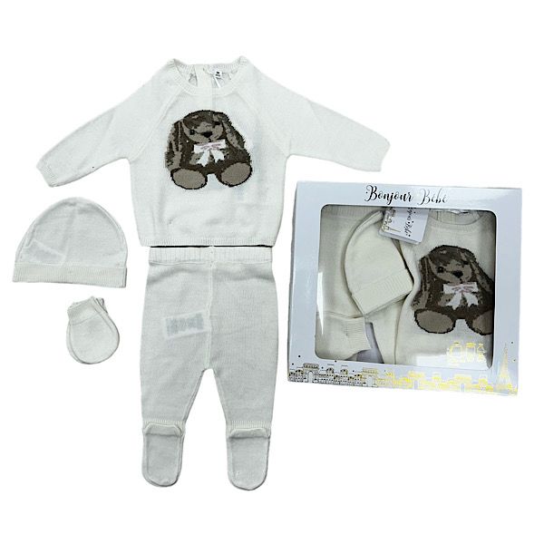 Ivory Bunny Rabbit 4PC Layette Set NB-6M