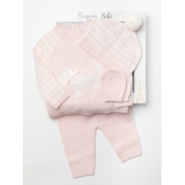 B/Pink & Ivory Bunny Knitted 4PC Layette Gift Set NB-6M