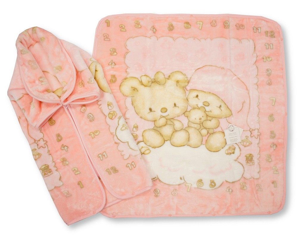 B/Pink Teddy Bear Baby Wrap 80x80CM