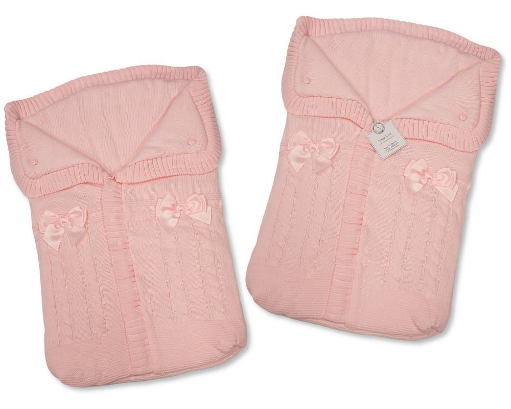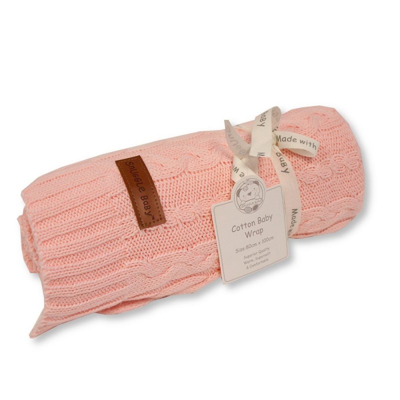 Baby Boxed Pink Cotton Cable Knit Wrap 75cm x 100cm