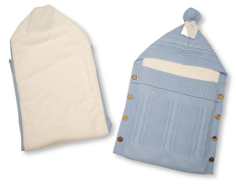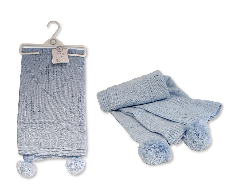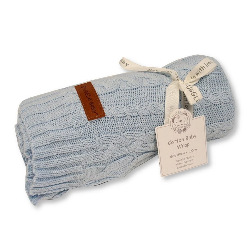Baby Boxed Blue Cotton Cable Knit Wrap 75cm x 100cm