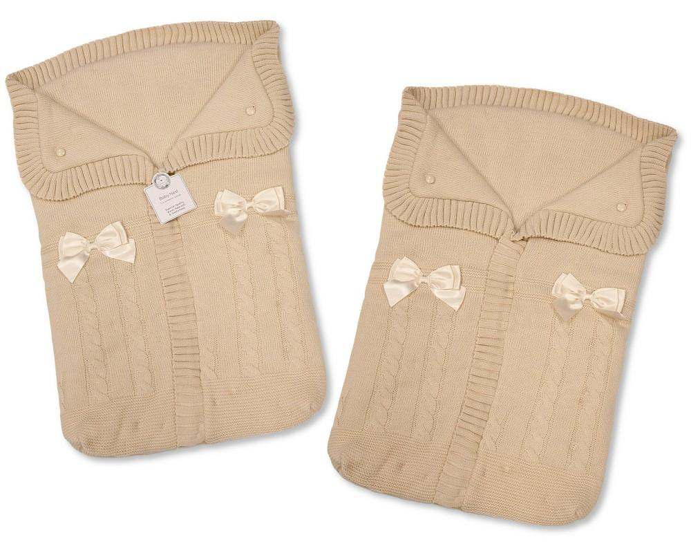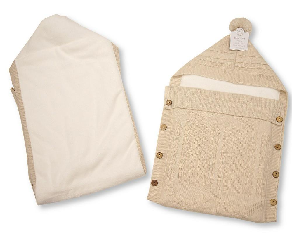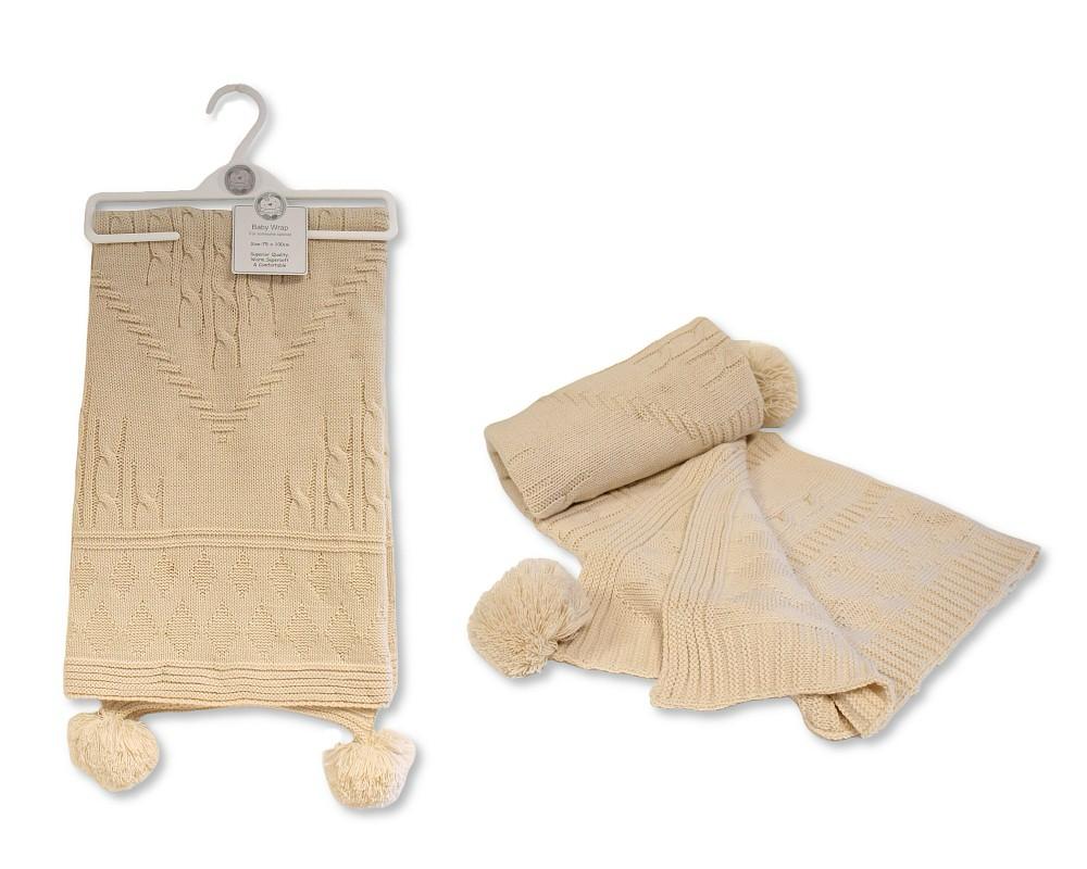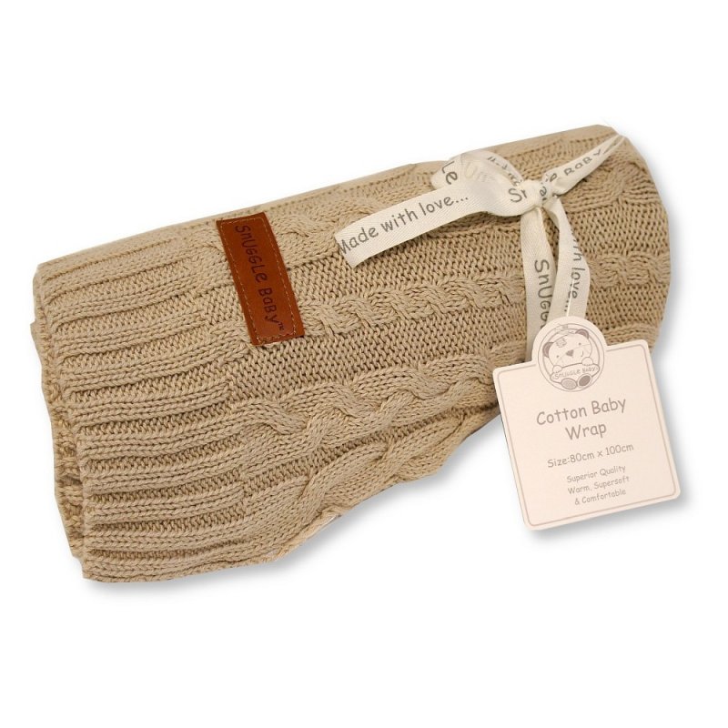 Baby Boxed Taupe Cotton Cable Knit Wrap 75cm x 100cm