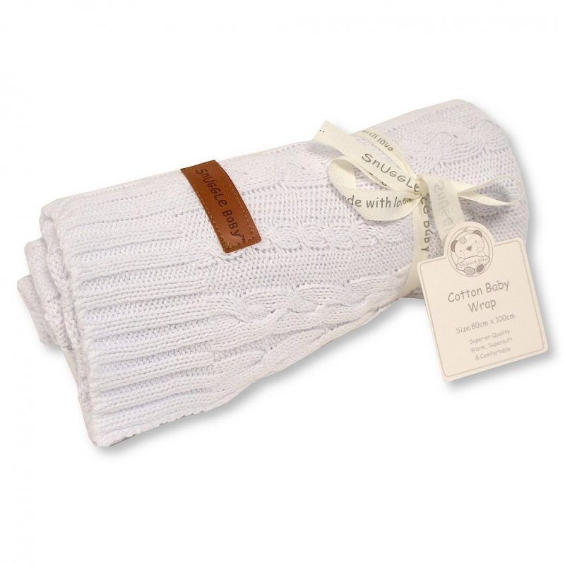 Baby Boxed White Cotton Cable Knit Wrap 75cm x 100cm