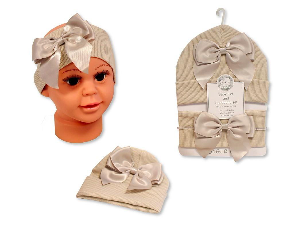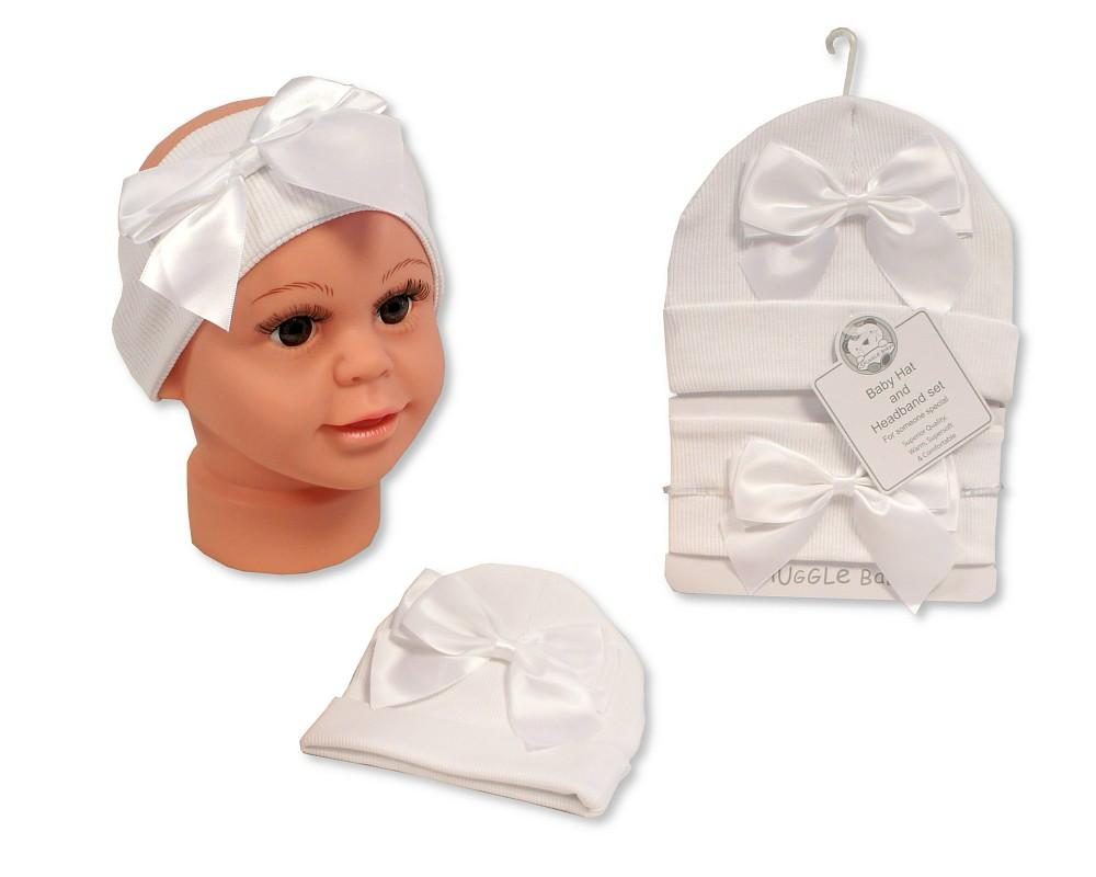 Baby Ivory White Bow 2PC Hat & Headband Set