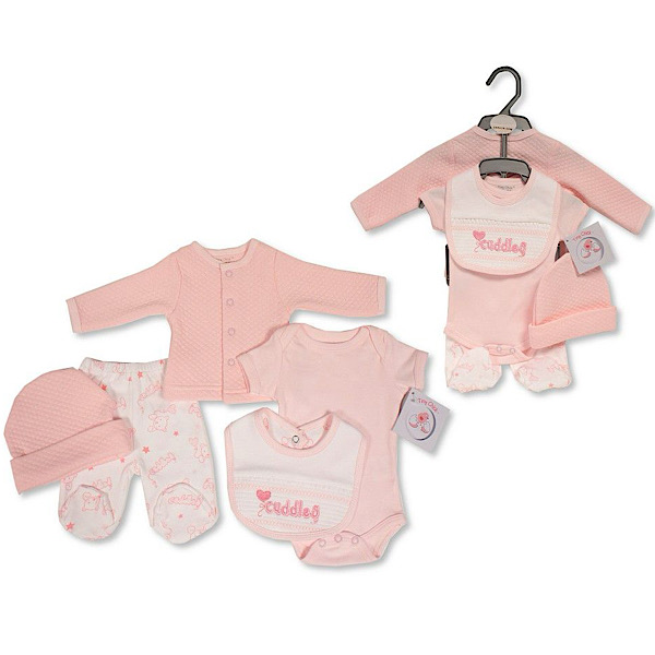 Girls 5pc ”cuddles” Motif Baby Grow Set 3-8lbs