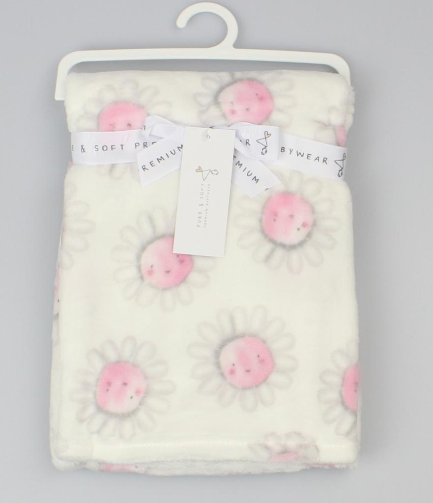 Ivory & Pink Plush Daisy Print Wrap 100x75CM