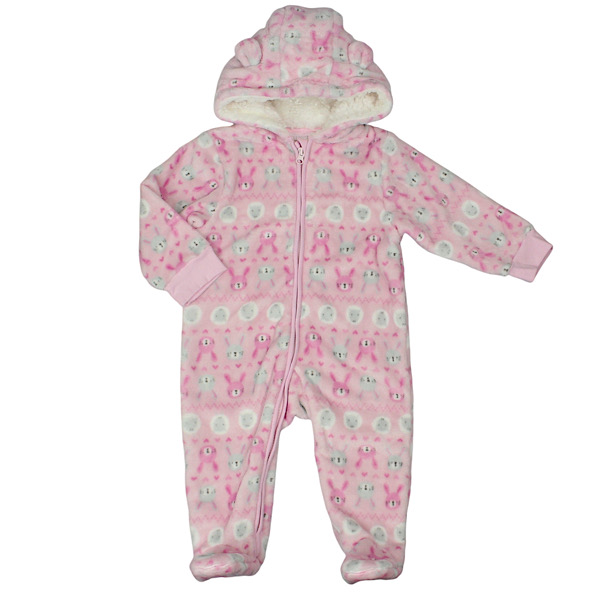 B/Pink Bunny Sherpa Fleece Pramsuit 3-12M