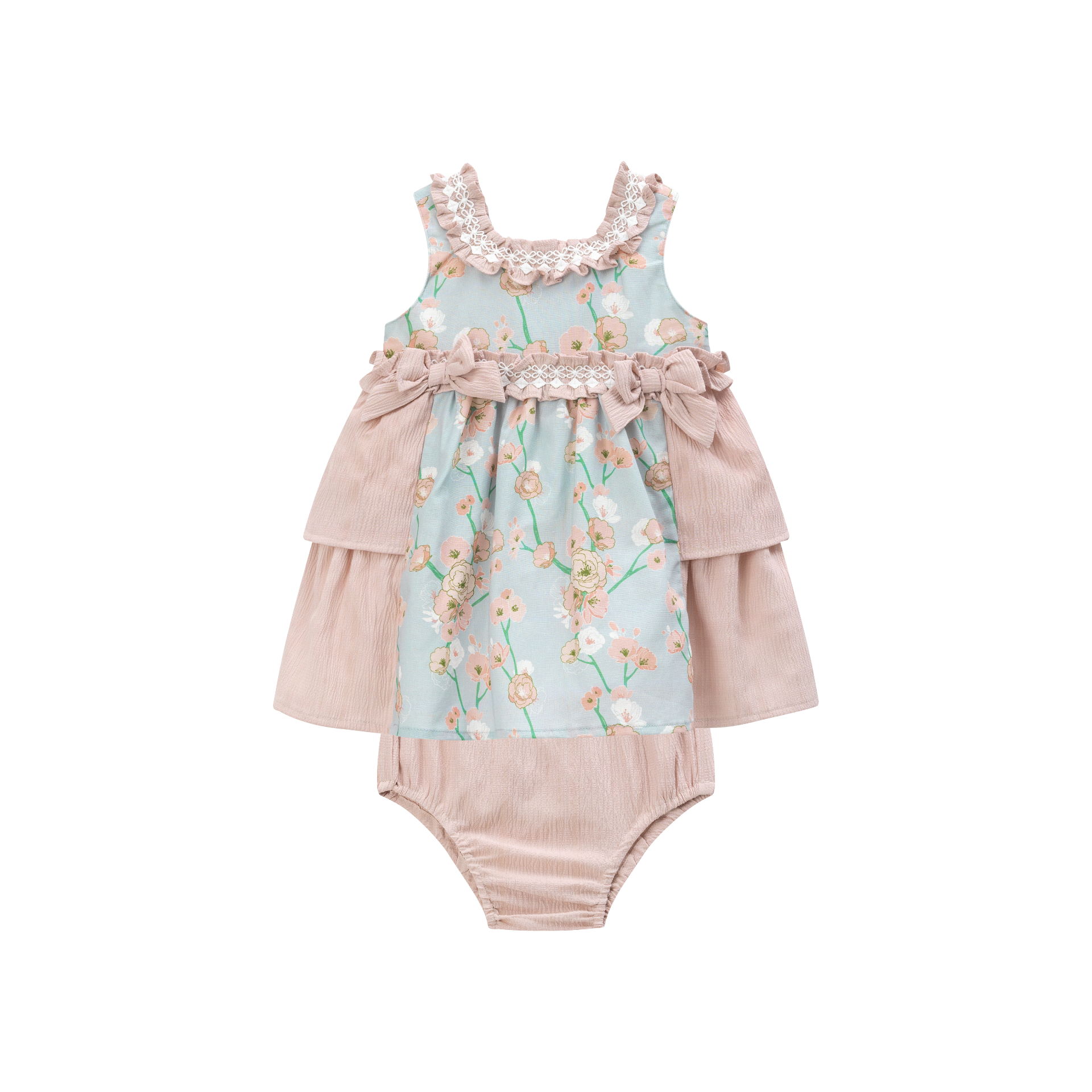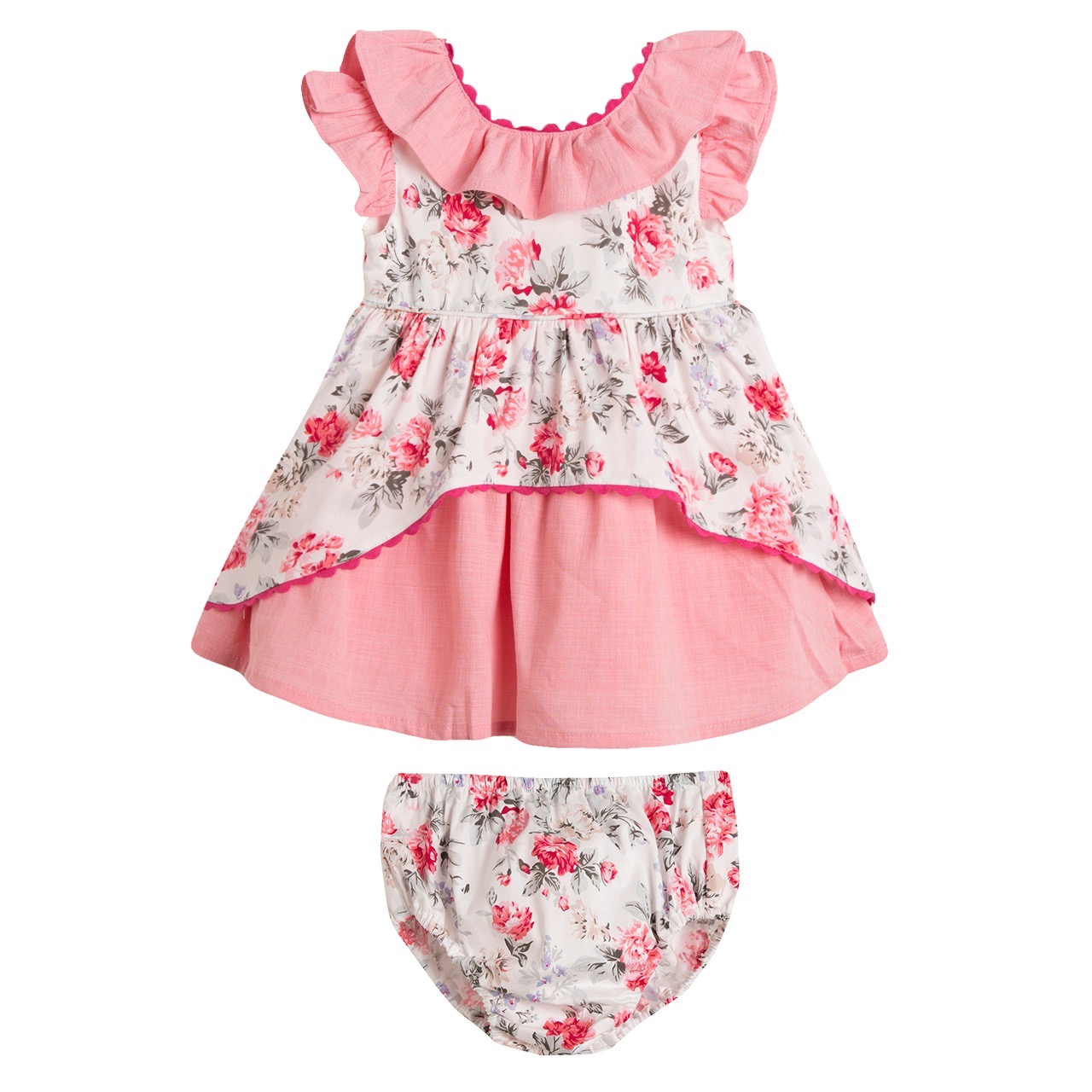 Spanish Floral Contrast Layered Dress Set 6-30M
