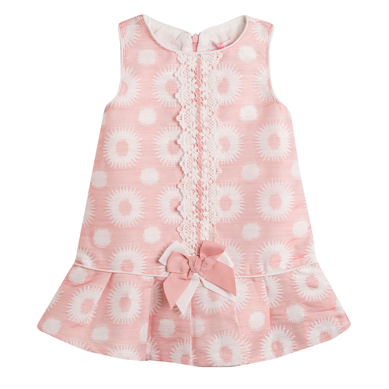 Pink Sleeveless Pleated Hem Laced Dress 6-30M