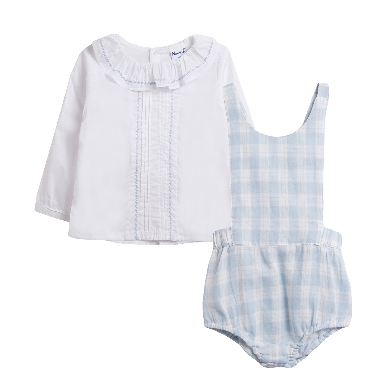 B/Blue Plaid Dungaree Romper & Shirt Set 1-9M