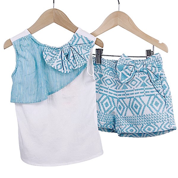 Sleeveless Ruffle Blouse & Geometric Shorts Set 3-8