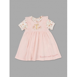 Pink Hare & Bunny Motif Empire Dress Set 0-18M
