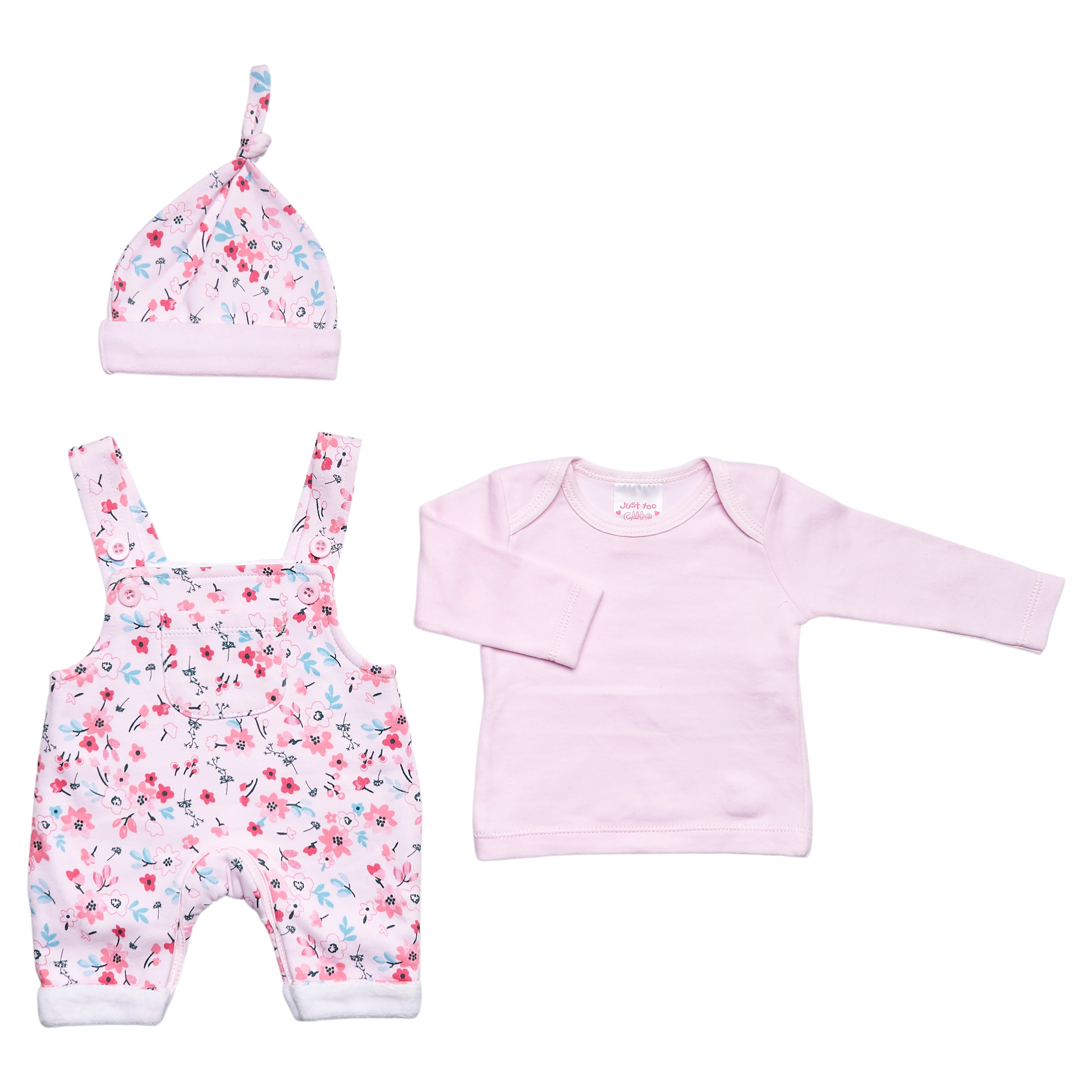 B/Pink Floral Print 3PC Dungaree Set 3-8lbs