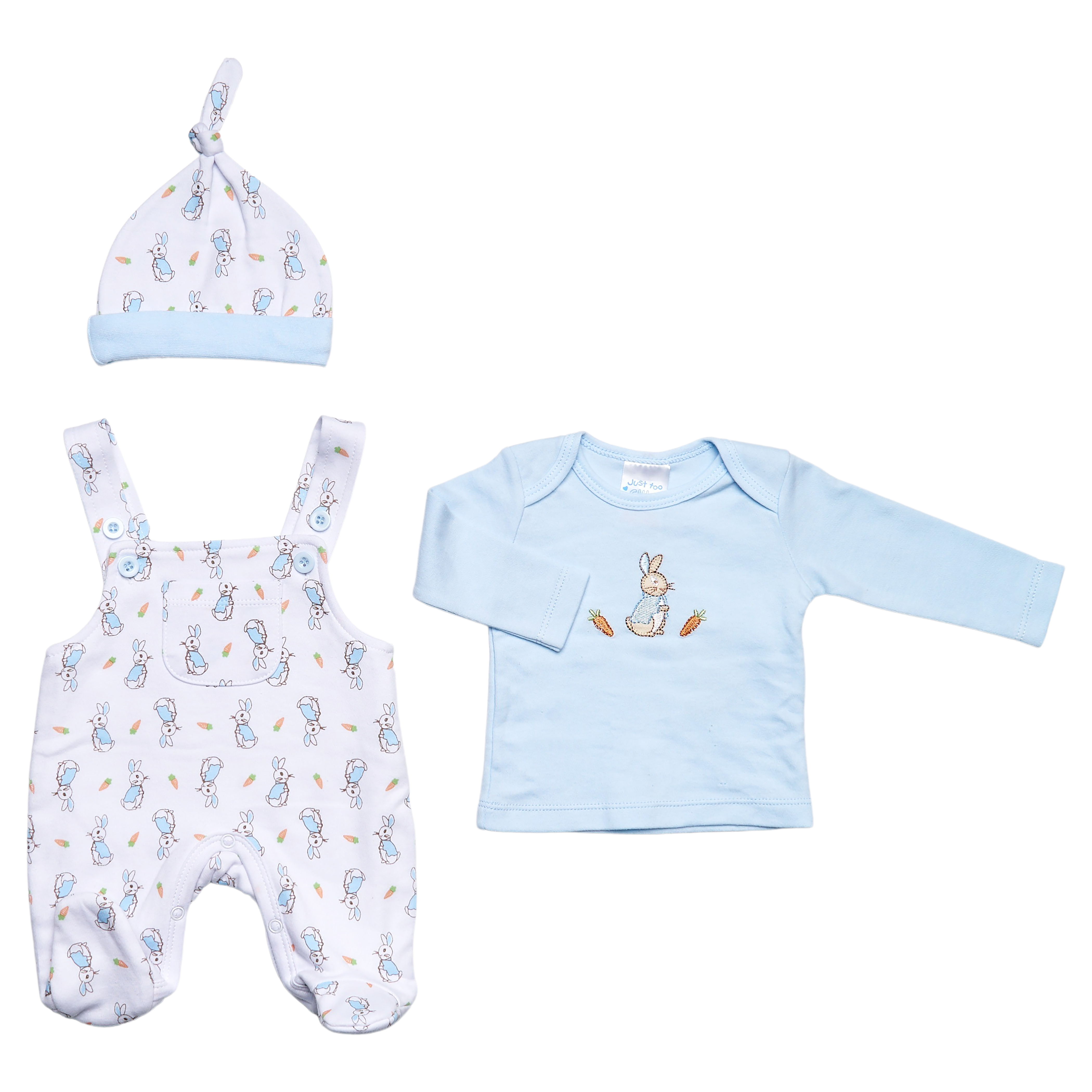 B/Blue Carrot & Bunny 3PC Dungaree Set 3-8lbs