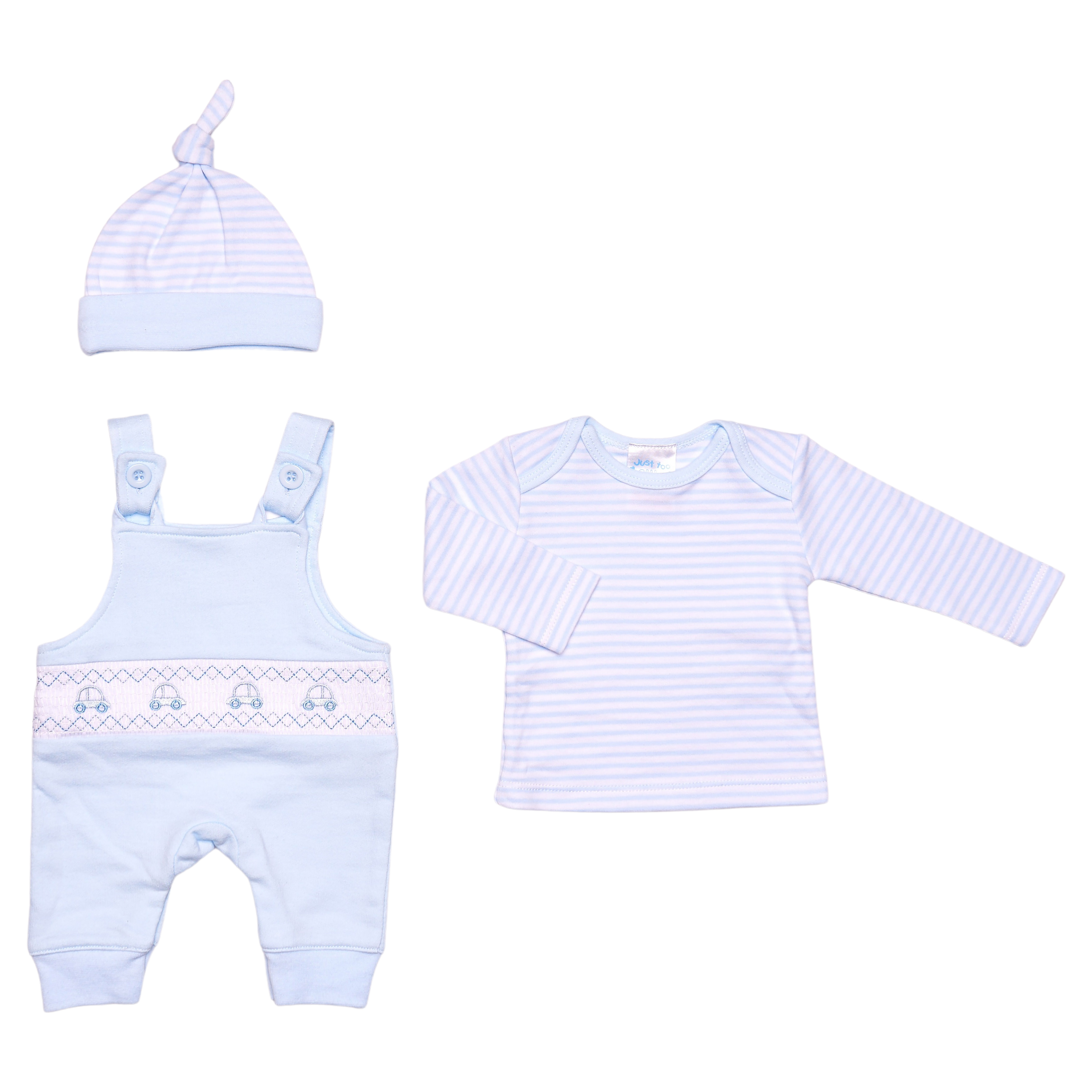 Sky Smocked Car 3PC Overalls Set 3-8lbs