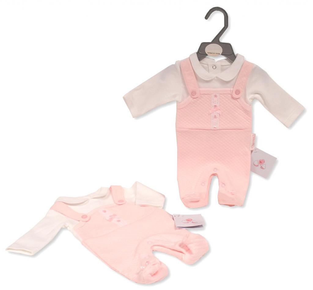 Pink Quilted 2PC Dungarees Outfit 3-8lbs