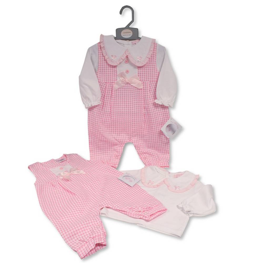 Pink Dogtooth 2PC Dungaree Outfit 3-8lbs