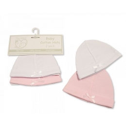 B/Pink & White Bow Cotton Beanie Hats (TB)