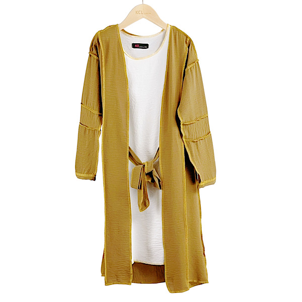 Girls Mustard 2PC Tunic Jacket Abaya 3-13