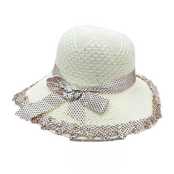 Girls Cream Polka Bow Summer Hat