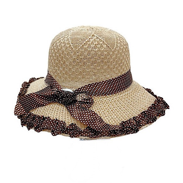 Girls Tan Polka Bow Summer Hat