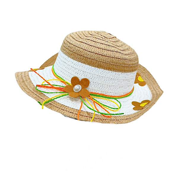Girls Beige Flower Summer Hat