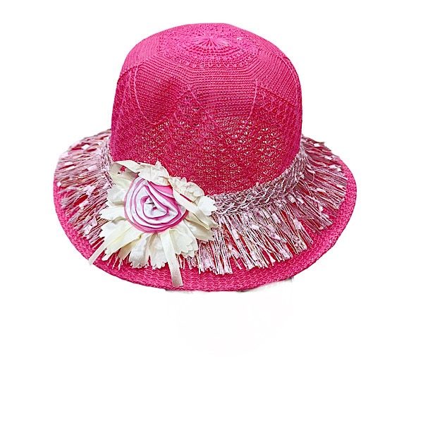 Girls Hot Pink Flower Summer Hat