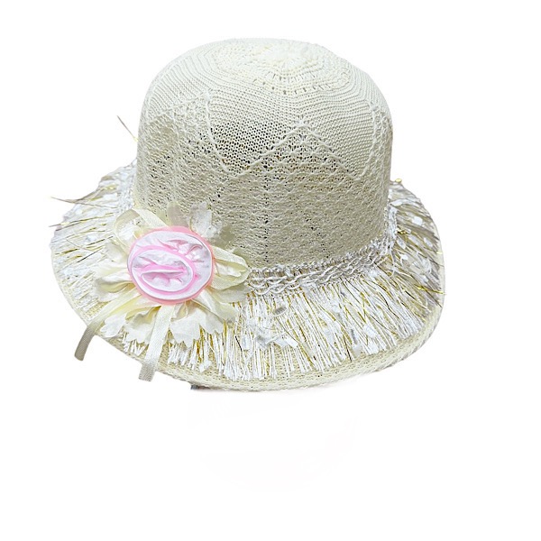 Girls Cream Flower Summer Hat