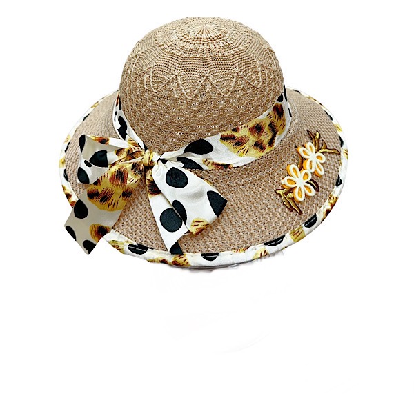 Girls Beige Polka scarf Bow Summer Hat