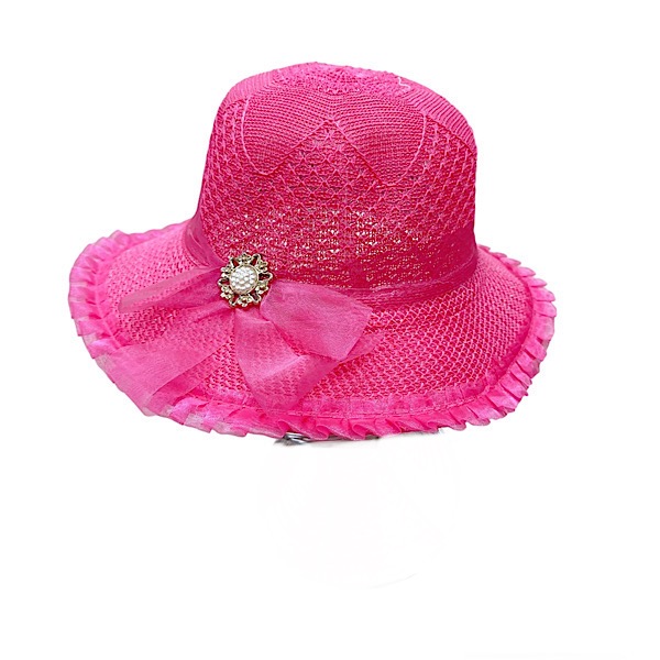 Girls Hot Pink Diamante Bow Summer Hat