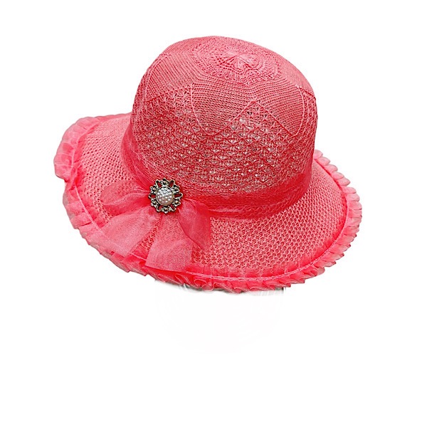 Girls Coral Diamante Bow Summer Hat