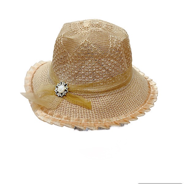 Girls Beige Diamante Bow Summer Hat