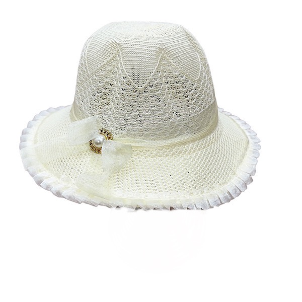 Girls Cream Diamante Bow Summer Hat