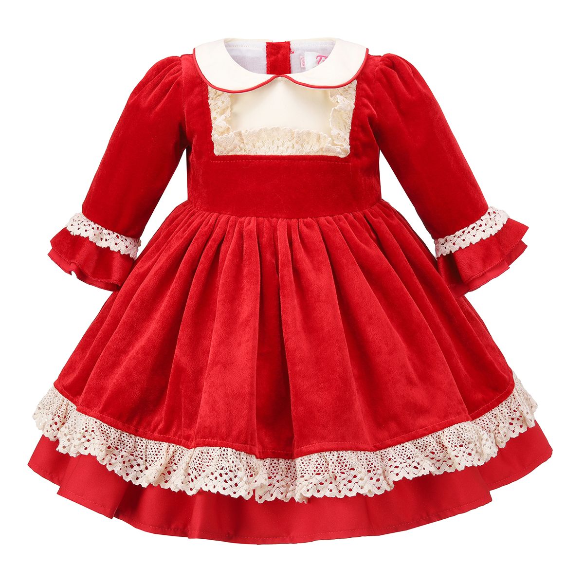 Red Velour Lace Ruffle Xmas Dress 6-24M