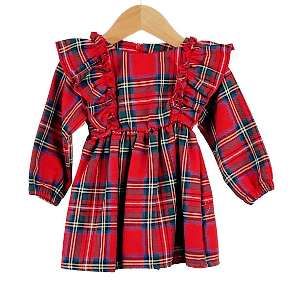 Red Tartan Ruffle Frill Christmas Dress 6-24M
